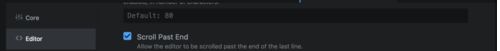 行末を画面の任意の場所に持ってきたい Atom で、行末からカーソルが動かなく、画面の一番後ろで入力しなくちゃいけないのを直したかったので直した。 設定のEditorで、Scroll Past end にチェックを入れる。